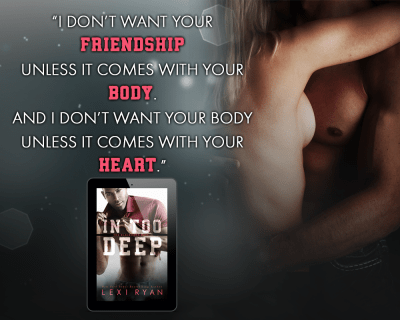 In Too Deep is a sexy and emotional novel intended for mature readers. It’s the fifth book in the world of the Blackhawk Boys, but can be enjoyed as a standalone.