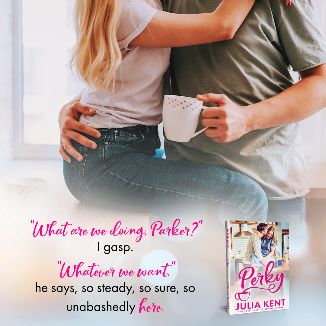 Parker’s grasp as we kiss is masterful, his hips pivoting until we’re in a tiny closet, the door shutting behind us, our bodies surrounded by coats. At any second, someone could walk in, find us, interrupt and embarrass us, but I don’t care as my fingers grasp his thick, hard chest. He doesn’t care as his hand slides between my thighs, my need to be touched so great that I moan into his mouth, biting his lip. He makes a sound that says he needs this, too, his erection pressing into my hip, the centering of his thickness as he nudges my legs wider with his knee making me hold my breath as he rubs up, just once, just right, just there.